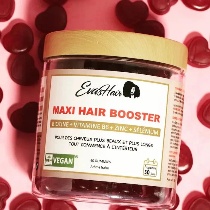 Sans colorants artificiels, les Gummies Maxi Hair Booster Evashair ont une texture non collante et un gout intense aux arômes naturels de fraise. Ces compléments alimentaires sont fabriqués en France.