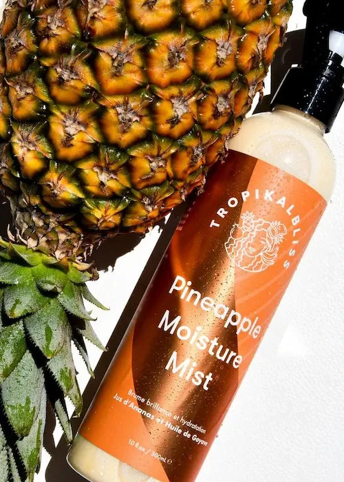 PINEAPPLE MOISTURE MIST de TropikalBliss est une Brume Hydratation & Brillance à l’Ananas et huile de Goyave. La texture légèrement crémeuse reste assez légère pour nourrir sans alourdir. Des boucles bien hydratées donnent des boucles bien définies!