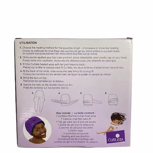 Mettez le quelques secondes au micro ondes ou, quelques minutes au bain marie. Ce bonnet chauffant emmagasine la chaleur, posez le ensuite sur vos cheveux. Un vrai plus pour votre routine capillaire!
