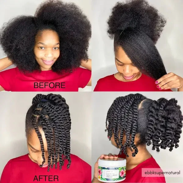 Idéale pour réaliser vos twist-outs, vanilles, tresses ou pour définir vos boucles, cette crème coiffante nourrit et protège efficacement vos cheveux sans les alourdir.