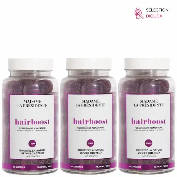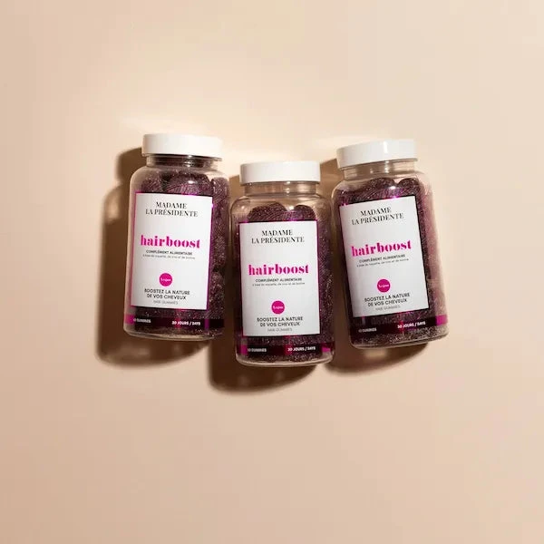 Les Gummies HAIRBOOST Madame La Présidente redonnent un coup de peps à la pousse des cheveux.