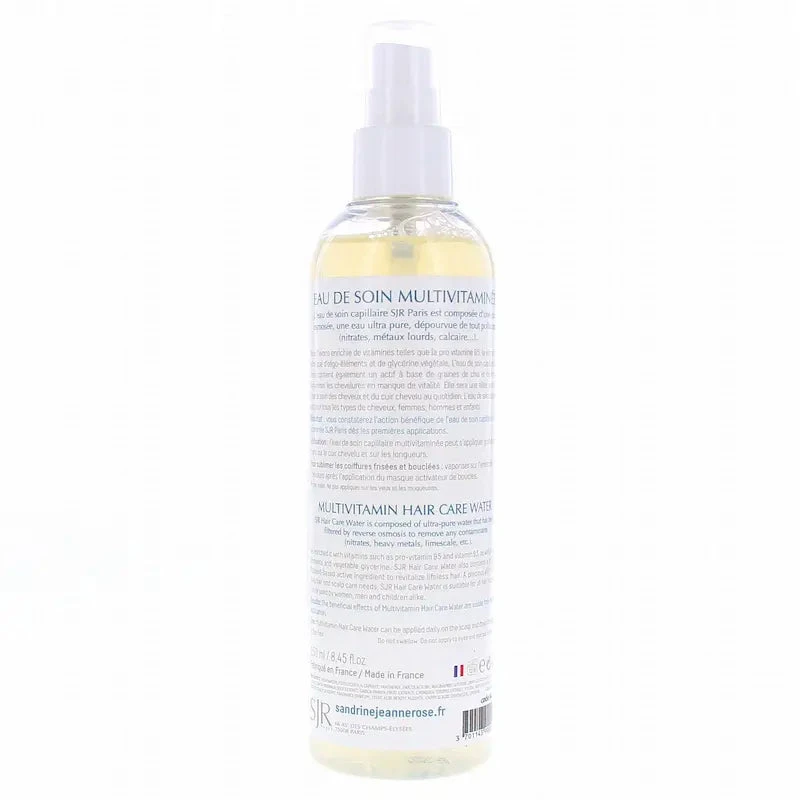 L’Eau de soin multivitaminée entoure le cheveu d’une gaine protectrice souple et naturelle, réactive les boucles et les restructure de façon spectaculaire.