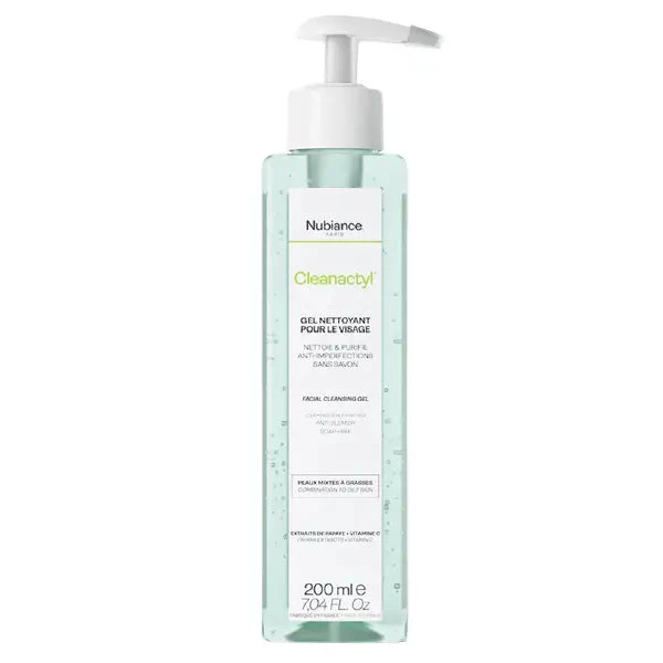 Le gel nettoyant Cleanactyl Nubiance est respectueux de la peau, doux et efficace pour nettoyer les peaux grasses, pour éliminer les particules de pollution ou résidus de maquillage. limite l’apparition d’imperfections grâce à son action antimicrobienne.