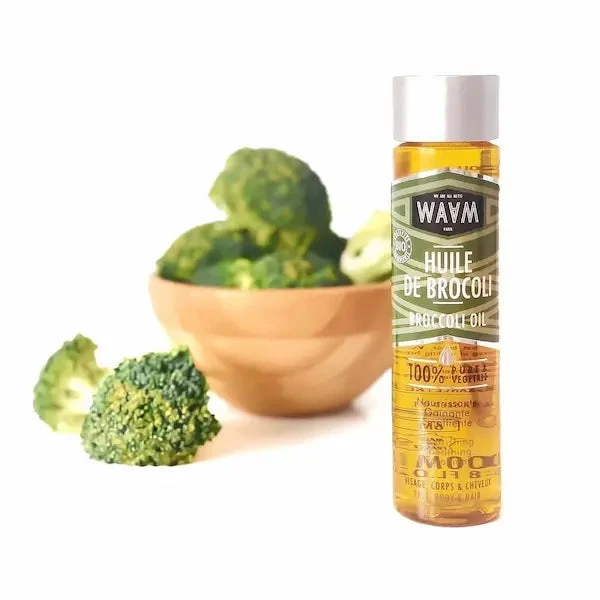 L’huile de Brocoli est une alternative naturelle aux silicones dans les shampooings, les après shampooings, les soins de coiffage. Elle les gaine, aide à lutter contre les frisottis et donne du brillant sans graisser ni alourdir.