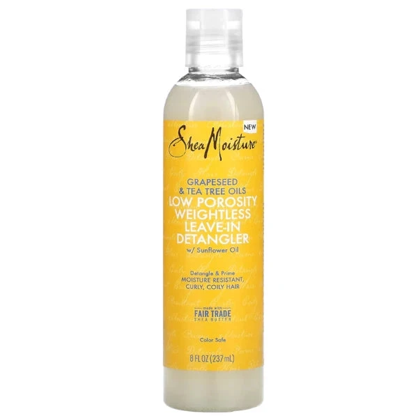 Ce soin sans rinçage hydrate en profondeur et apporte souplesse et douceur aux cheveux peu poreux. Les boucles retrouvent toute leur splendeur avec un volume naturel grâce à la texture légère du Leave-in Detangler Shea Moisture Low Porosity.