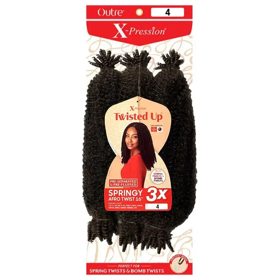 Les mèches X Pression Springy Afro Twist d’Outré sont légères pour limiter la traction, de texture douce aux finitions impeccables et faciles à séparer pour une superbe coiffure.
