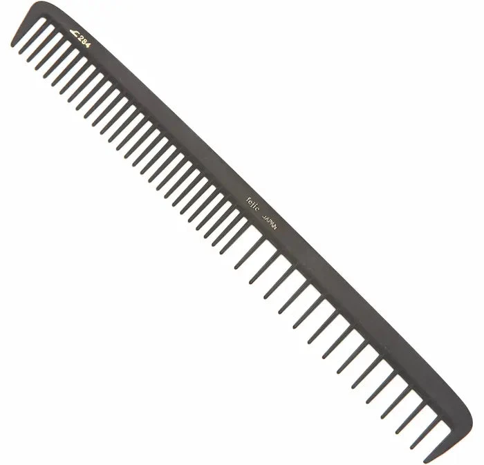 Antistatique et très léger, le peigne en carbone aux dents extra larges Fejic 284 est idéal pour défaire les noeuds et démêler les cheveux en délicatesse.