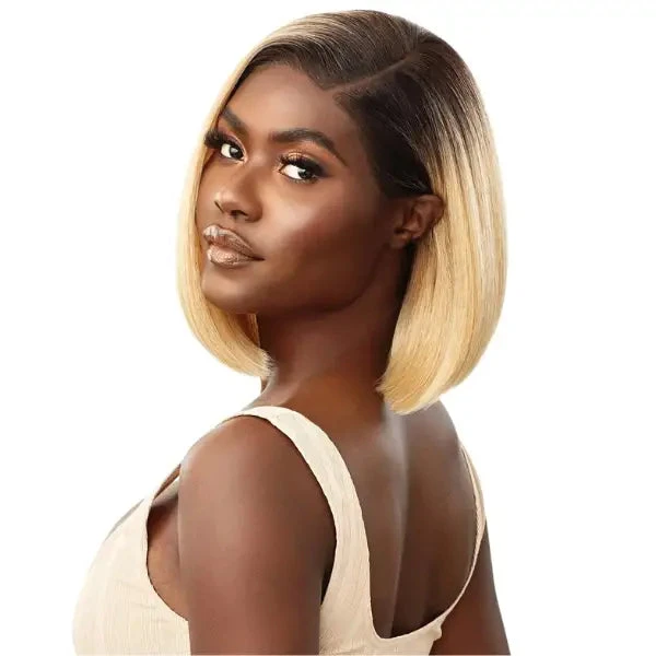 Craquez pour Breena de la collection Melted Hairline Outre Hair. Une perruque bob blonde avec une lace front HD style court qui offre une coiffure de tous les jours élégante et tendance.