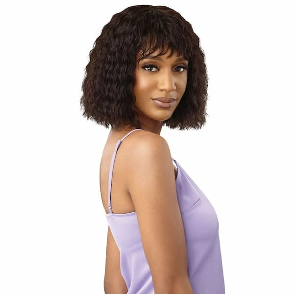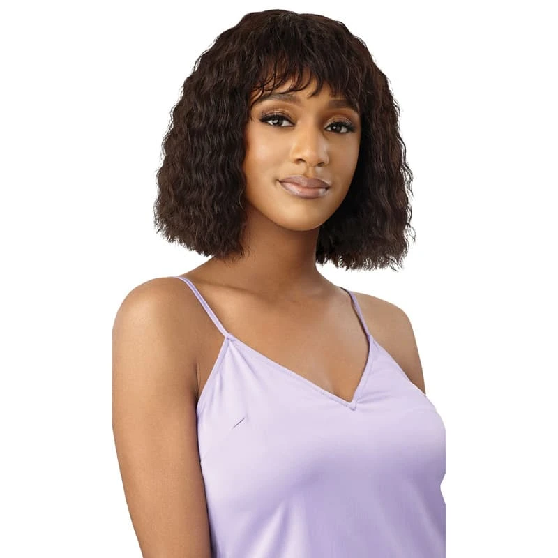 Adoptez un look à frange pour votre prochaine coiffure avec le modèle Rashina de la collection Purple Label Outré Hair.