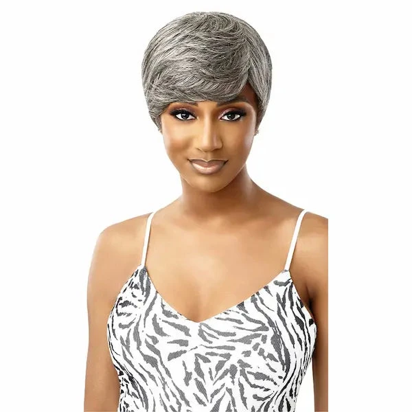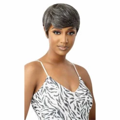 Adoptez la Perruque Grise Pixie Cut Asha de la collection Fab&Fly d’Outré Hair.