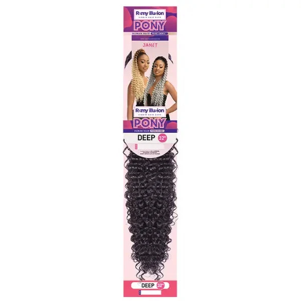 Craquez pour une ponytail longue et bouclée avec le postiche human hair blend curly Pony Deep de la collection Remy Illusion de Janet Collection.