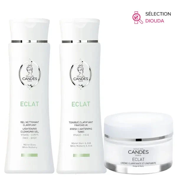 Le programme de soins Candès est conçu pour estomper les taches, unifier et redonner de la clarté au teint, cette routine de soins pour le visage est recommandée aux peaux mixtes à grasses ayant un souci d’hyperpigmentation ou d’unification du teint. Elle comprend les soins ci-dessous: