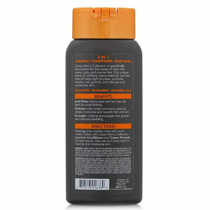 Cantu Men Shea Butter 3 In1 Shampoo Conditioner Body Wash 400 ml combine 3 soins homme pour un résultat optimal:
