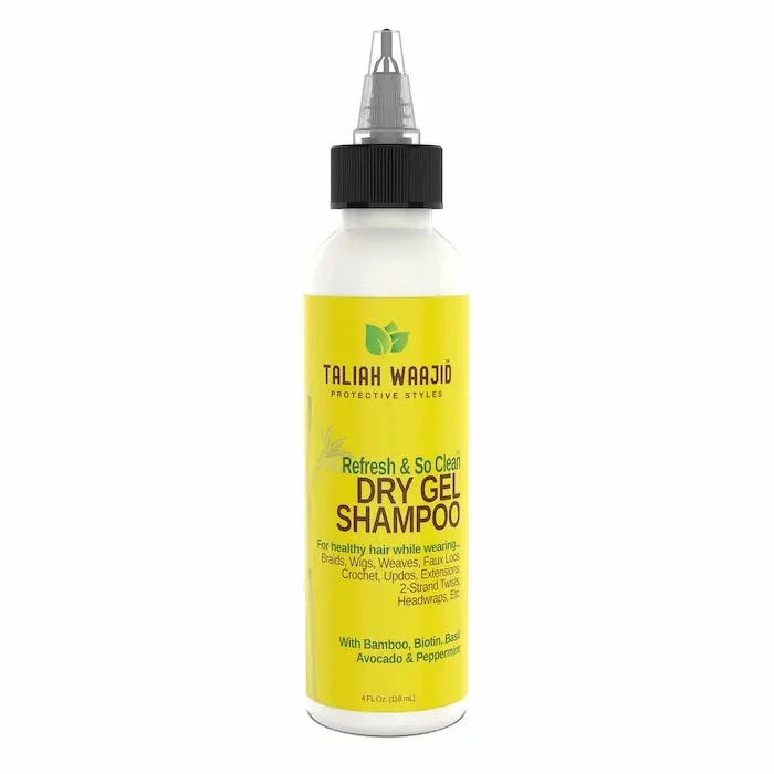 Dry Gel Shampoo est un shampoing gel nettoyant et revitalisant sans rinçage particulièrement pratique à utiliser si vous portez des tresses, vanilles, fausses locks ou coiffures en crochets braids.