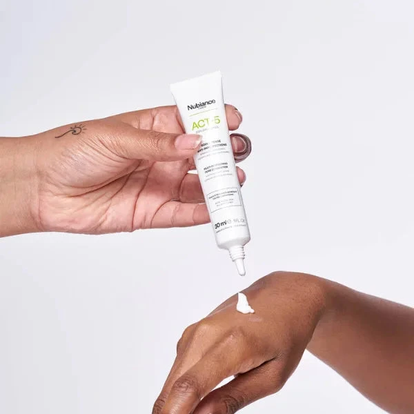 Idéal pour lutter contre l’apparition de boutons ou réguler les zones à tendance grasse, le Soin ACT-5 agit efficacement sur les imperfections du visage grâce à 3 actifs majeurs :