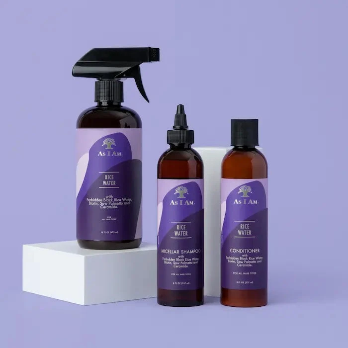 Combinez le shampooing, l’après-shampooing et le spray capillaire de la gamme à l’Eau de Riz Noir – As I Am Rice Water! Cette une routine capillaire prend soin de manière holistique, favorisant la santé, la croissance et la beauté de vos cheveux. Ils sont bien adaptés aux coiffures protectrices.