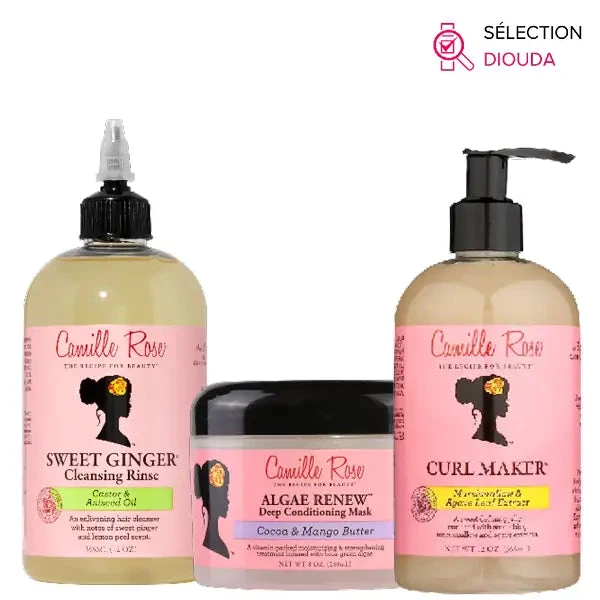 Pour démarrer votre Wash and Go sur de bonnes bases, retrouvez dans ce pack 3 soins capillaires essentiels Camille Rose. Lavez et revitalisez votre chevelure pour des boucles toujours aussi légères, souples et définies avec le shampoing Sweet Ginger, le masque Algae Renew et la Gelée Curl Maker Camille Rose.